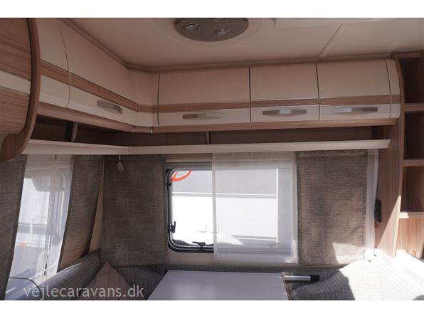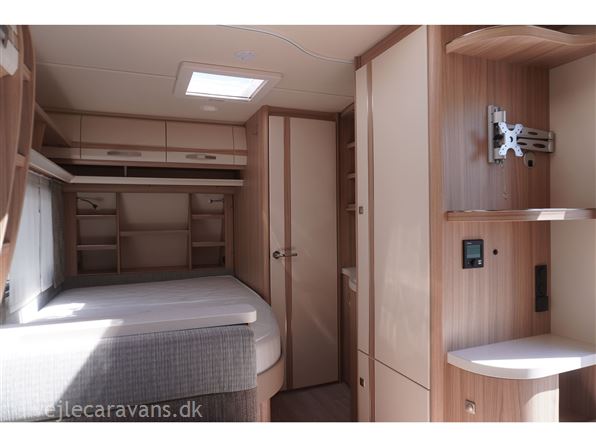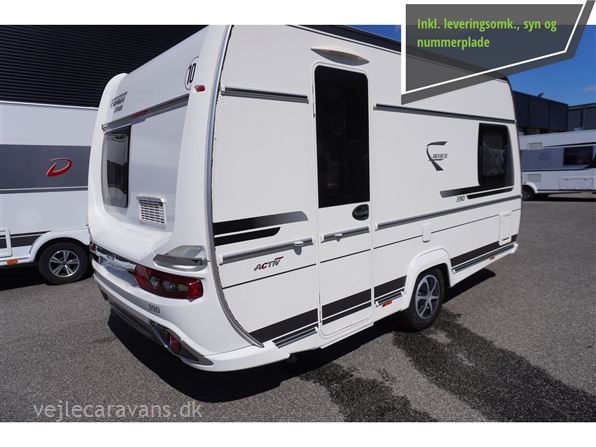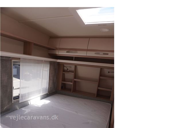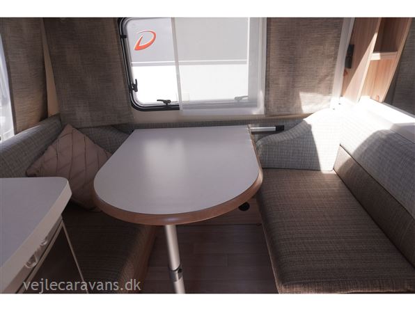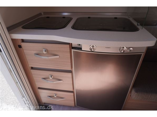 En rejse campingvogn med fransk seng i venstre side foran. Toilet i højre side for. Sidesiddegruppe i venstre side bag. Endekøkken med 3 gasblus, skuffer, og et køleskab på 102 ltr. Der er monteret Combi varme med el og cykelholder. Der medfølger et Isabella sun shine plus med front. Prisen er inkl. leveringsomkostninger og nr. plade.