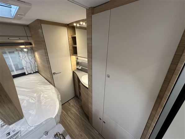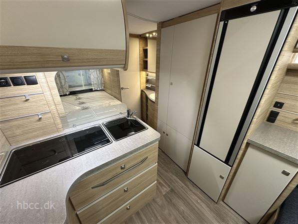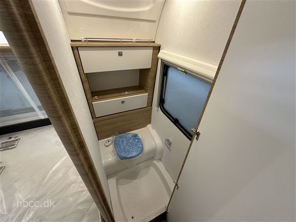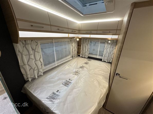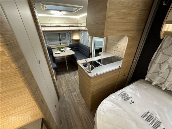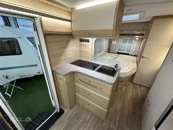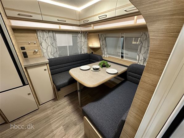 Den velkendte indretning med vinkelkøkken er tilbage! SFE indretningen vandt i 2018 årets vogn og nu er den tilbage i Bianco Activ! Vognen er standard udstyret med Truma combi 4 varmer og er udover det med gulvvarme, 2.000kg aksel og myggenetdør! Derfor er prisen 282.950kr