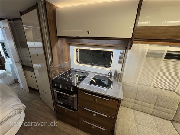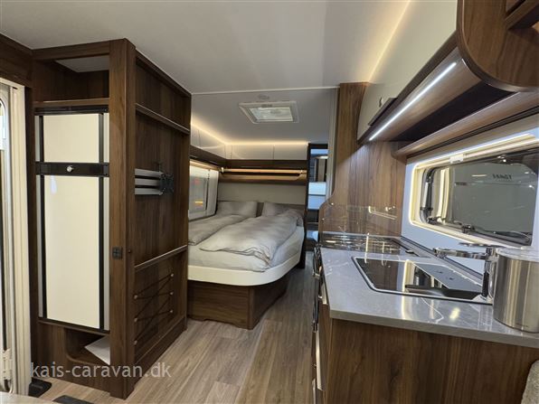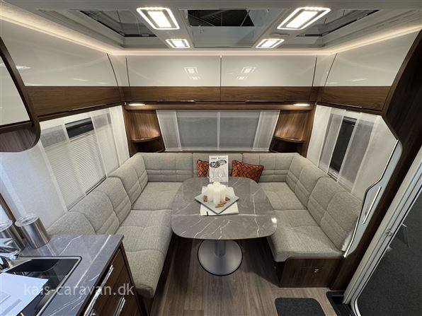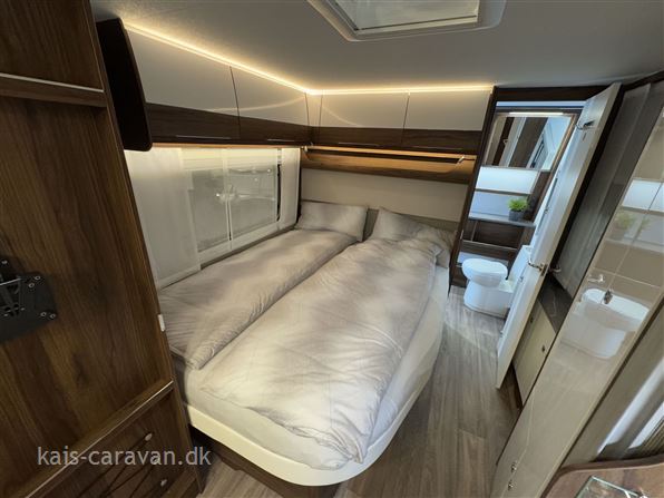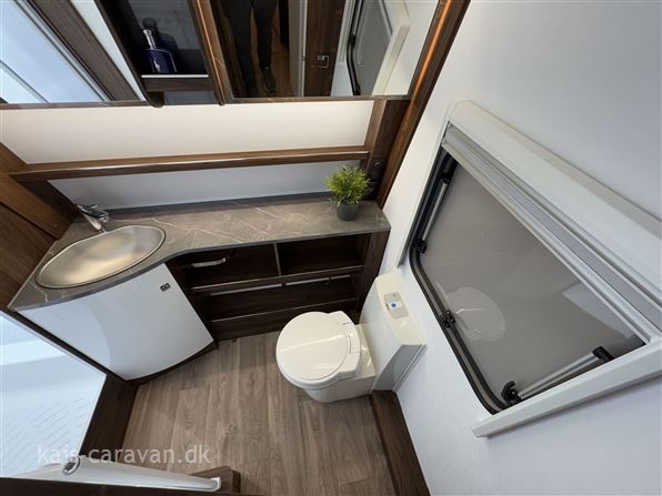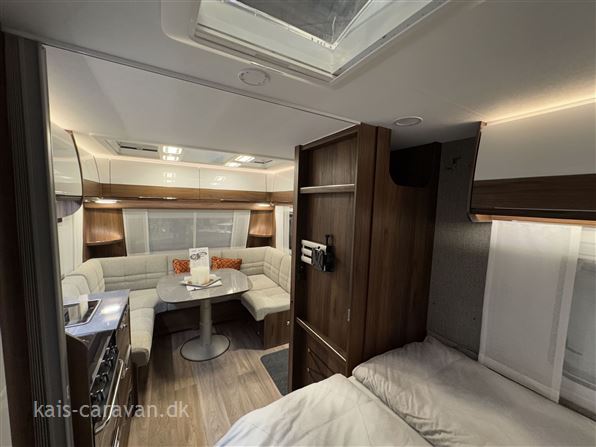 Super lækker vogn med Centralvarme og vandbåret gulvarme. Vognen har stort ende badeværelse med brusekabine og fransk dobbeltseng bagerst i vognen. midt i vognen er der køkken med skuffet, komfur med gasbageovn og stort 154 l kompressor køleskab. Forrest i vognen er der en rundsiddegruppe som over har et stort tagvindue med lys som kan åbnes. Vognen er udstyret med 2000 kg aksel, Alufælge, 12 volts pakke uden batteri, Kantsyet tæpper, Hyndestof Geneve med Deko pakke, Dune og pude set. Prisen er incl leveringsomkostninger.