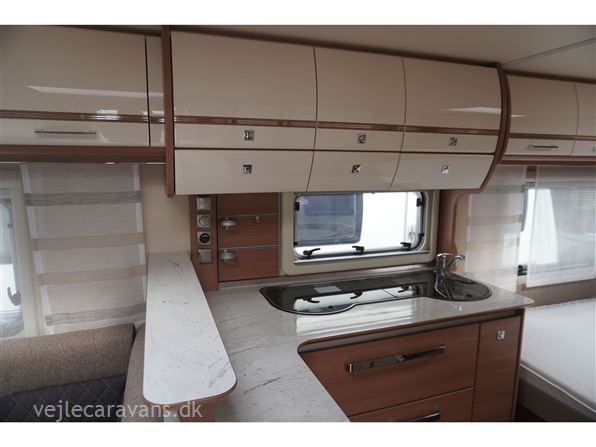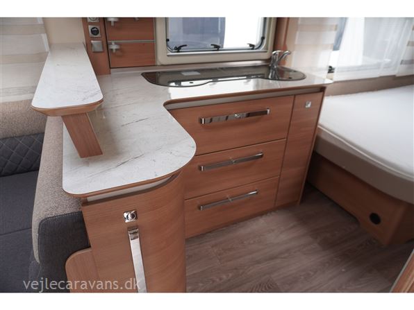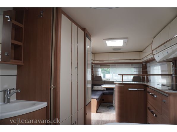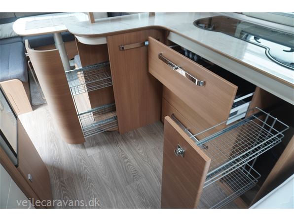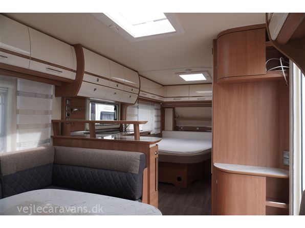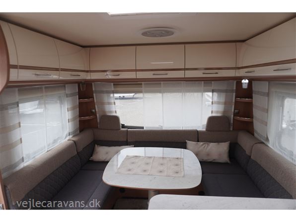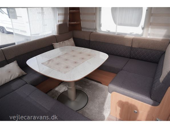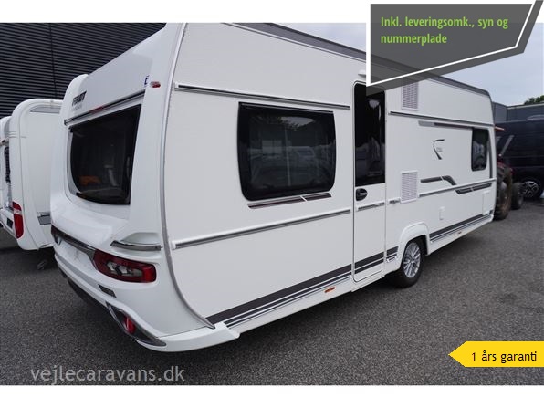 En populær indretning med fransk seng i venstre side for. Toilet i højre side for. Stor rundsiddegruppe i bagende af campingvognen. Vinkel køkken med 3 gasblus, brede skuffer, 2 udtræksskabe, samt et køleskab på 139 ltr. Der medfølger et Isabella penta etna med mega stænger. Prisen er inkl. leveringsomkostninger og nr. plade. Der er 1 års garanti på vognen.