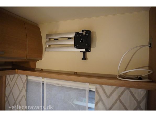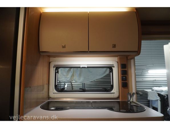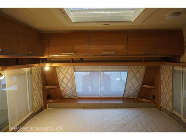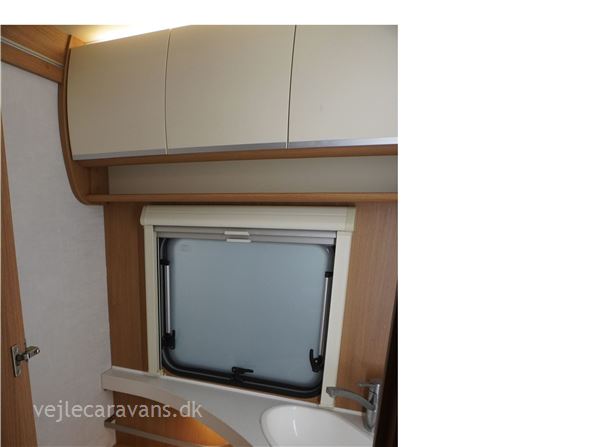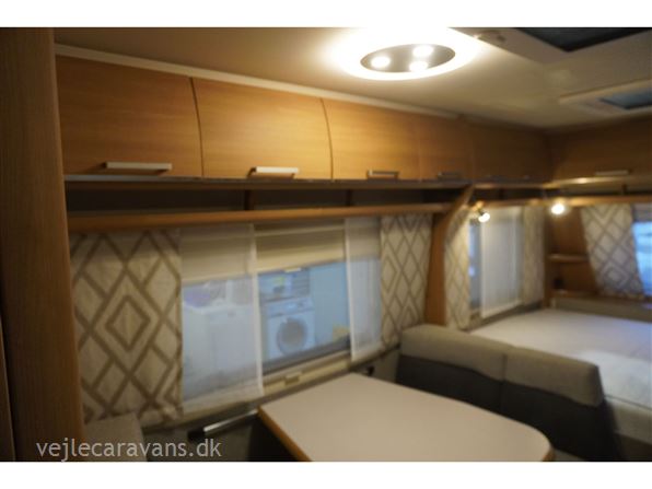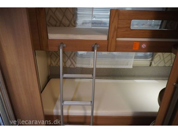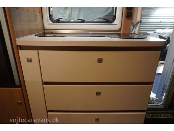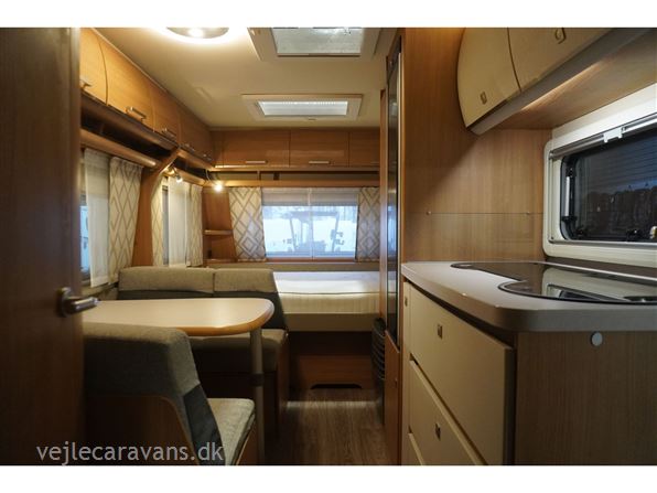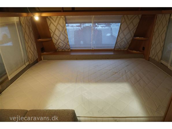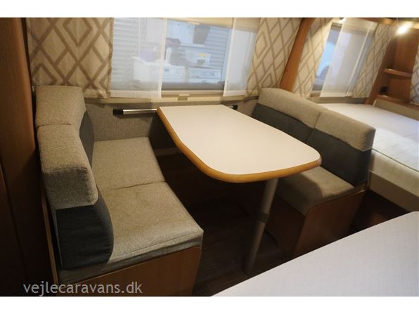 Familie campingvogn med dobbeltseng på tværs i forenden af vognen. 2 køjer på tværs af campingvogne, hvor den nederste køje kan vippes op. Siddegruppe midt i vognen med køkken overfor med 3 gasblus, brede skuffer, et udtræksskab, samt et køleskab på 133 ltr. Der er monteret Truma duocontrol, ATC. Der medfølger et Isabella commodore med carbonx stænger. Prisen er inkl. leveringsomkostninger og nr. plade.