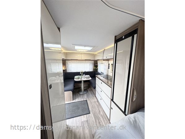 Vognen leveres bla. med Truma Combi4E fyr, gulvtemperering, Cania betræk, lyspakke, dekopakke, sengetøj, kompressor køleskab, fluenetsdør, alufælge, ATC, Truma duocontrol, crashsensor og MEGET MEGET MERE.