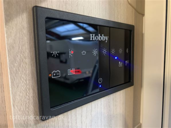 Hobby deluxe er med ekstra bred indgangsdør, i en del, med tredobbelt lås, vindue, affaldsspand, opbevaringsrum og insektplisségardin i dørrammen | Træktøjsafdækning | KNOTT ANS-påløbsbremse med automatisk efterjustering | Tagluger med mørklægnings- og insektplisségardin | Kassette med mørklægnings- og myggenet gardin. | Køkkenvindue med rullegardin med integreret stikdåse | (AES) DOMETIC-køleskab, 133 liter, med dobbeltanslag, absorbtionsteknik | Komfortable madrasser med fjederkerne | Hæve sænke seng, modelafhængig | HOBBY CONNECT, styring af teknikken med Hobby-betjeningspanel og Bluetooth App | Hyggebelysning | Mindst fem stikdåser ... og meget mere.