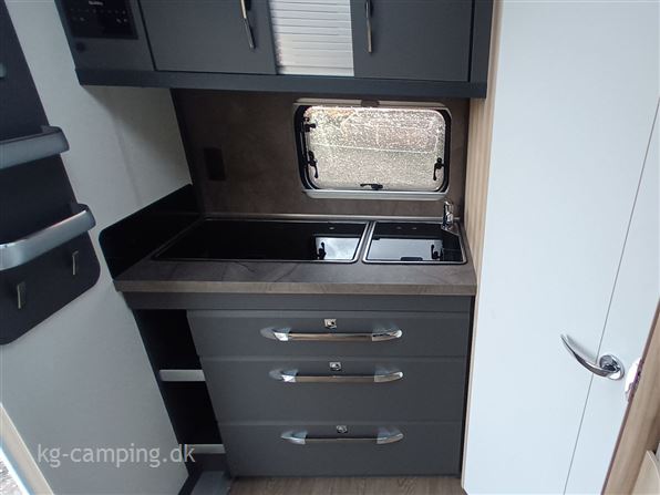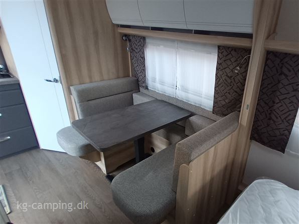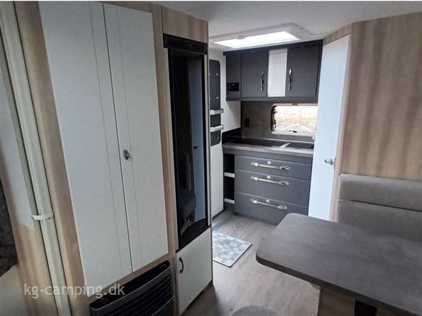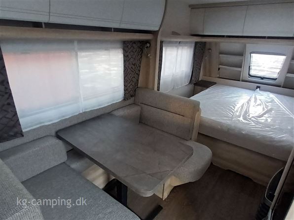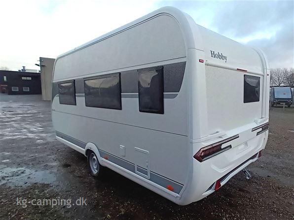 Denne vogn er indrettet med fritstående dobbeltseng i front, sidesiddegruppe og endekøkken med stort køleskab. Lys mm. kan betjenes gennem HOBBY CONNECT APP. Følgende udstyr er med i prisen: 1500 kg aksel 4.299 kr. - Hyggebelysning 2.899 kr. - EL-gulvtemperering 6.399 kr. På denne nye HOBBY vogn kan man opnå 12 års Tæthedstryghed ved et årligt eftersyn.