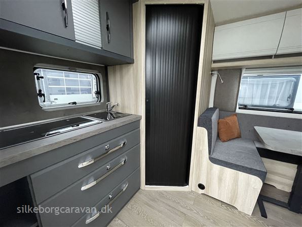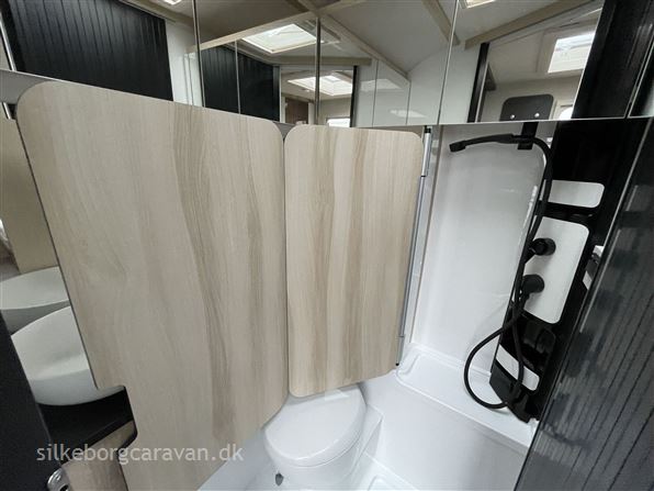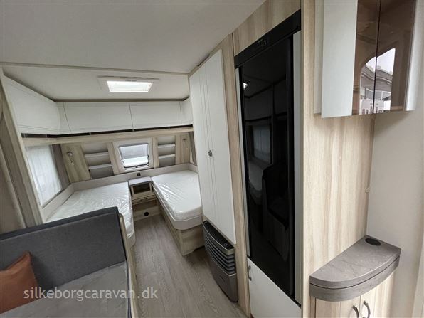 I 460 SL modellen finder man to dejlige enkeltsenge med lameludtræk i forenden af vognen, stort køleskab, endekøkkenet og lækkert nyt badeværelse med mulighed for brusebad.