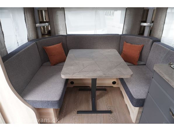 Så er DK Line model fra Hobby landet i en 460 UFe model. Der er fransk seng i højre side foran. Toilet i venstre side for med håndvask uden for toiletrummet. Rundsiddegruppe i bagenden af campingvognen med flot betræk på hynderne. Køkken i venstre side af vognen væk fra fortelt siden med 3 gasblus, brede skuffer, samt et køleskab på 142 ltr. DK line har følgende fabriksmonteret udstyr: 1500 kg. aksel, Alufælge, gulvtemperering, ambiente lys, DK staffering. Prisen er inkl. leveringsomkostninger og nr. plade. Der er mulighed for at købe 3 års ekstra fabriksgaranti.
