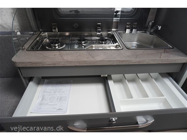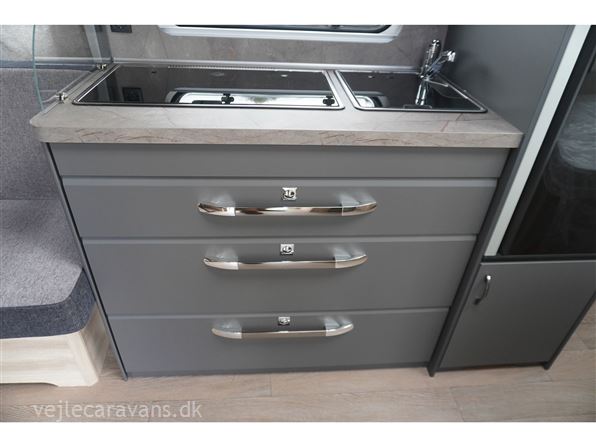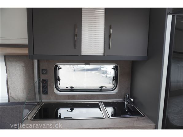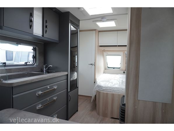 Så er DK Line model fra Hobby landet i en 460 UFe model. Der er fransk seng i højre side foran. Toilet i venstre side for med håndvask uden for toiletrummet. Rundsiddegruppe i bagenden af campingvognen med flot betræk på hynderne. Køkken i venstre side af vognen væk fra fortelt siden med 3 gasblus, brede skuffer, samt et køleskab på 142 ltr. DK line har følgende fabriksmonteret udstyr: 1500 kg. aksel, Alufælge, gulvtemperering, ambiente lys, DK staffering. Prisen er inkl. leveringsomkostninger og nr. plade. Der er mulighed for at købe 3 års ekstra fabriksgaranti.