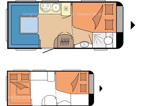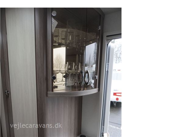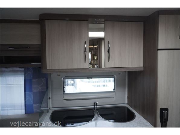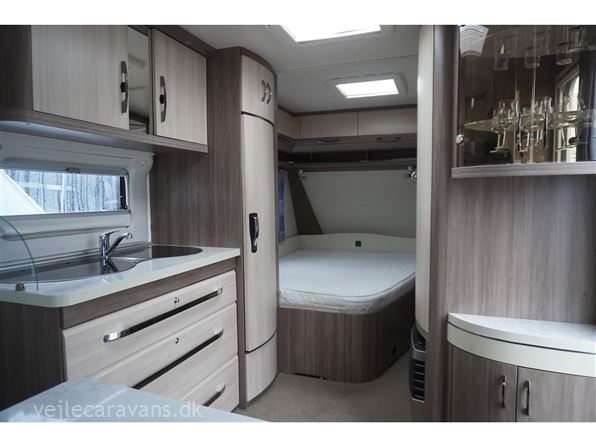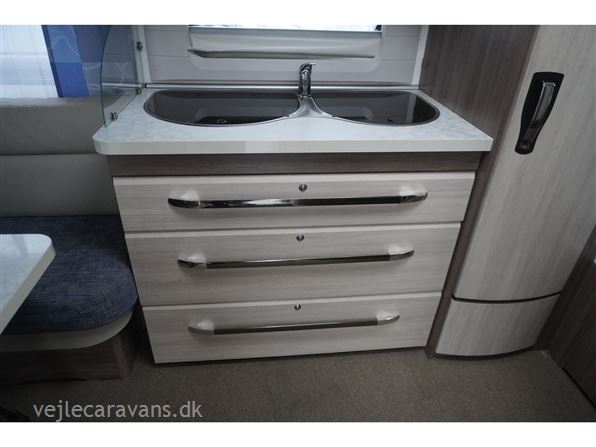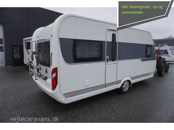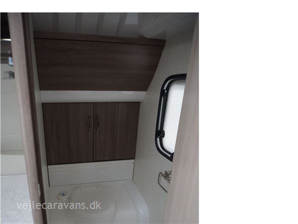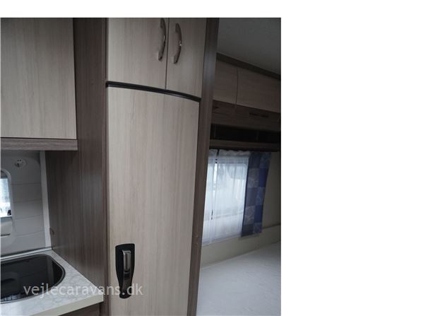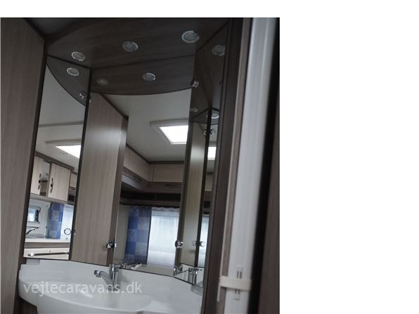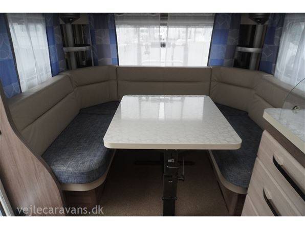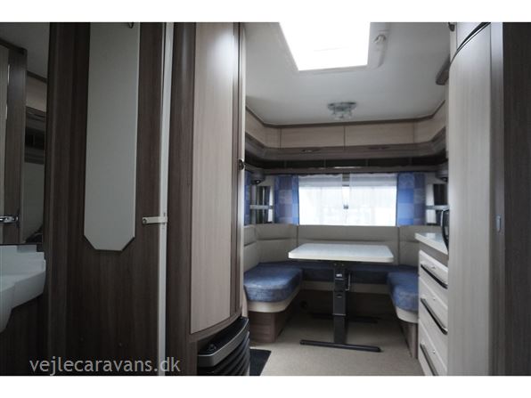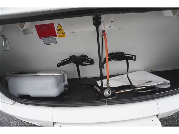 Campingvogn med fransk seng i venstre side for. Toilet i højre side for, hvor håndvasken er uden for toiletrummet. Rundsiddegruppe bagerste i campingvognen. Køkken i venstre side af vognen væk fra fortelt siden med 3 gasblus brede skuffer, samt et køleskab på 142 ltr. Der er monteret mover, cykelholder bagpå. Der medfølger et Ventura pacific 300 med IXL stænger. Prisen er inkl. leveringsomkostninger og nr. plade.