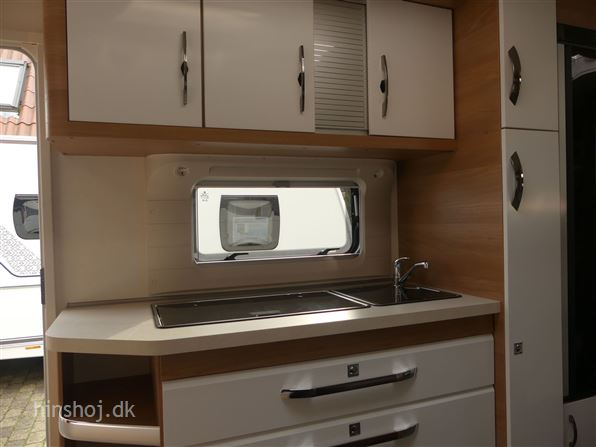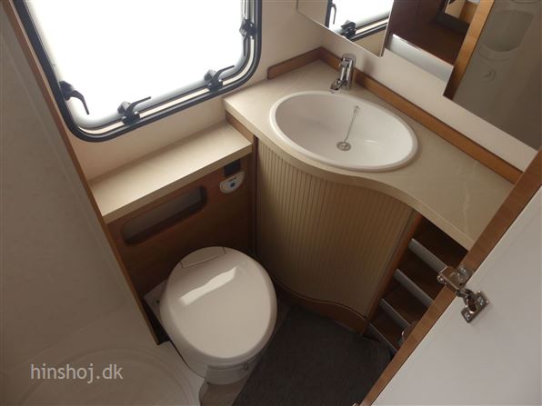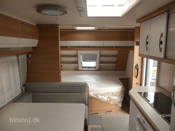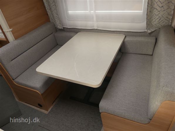 Oplev komfort og rummelighed med denne super flotte familievogn. Vognen har en tværvendt dobbeltseng, en stor siddegruppe, 3 køjer og et stort toiletrum med separat brusekabine, hvilket giver masser af plads til hele familien.
