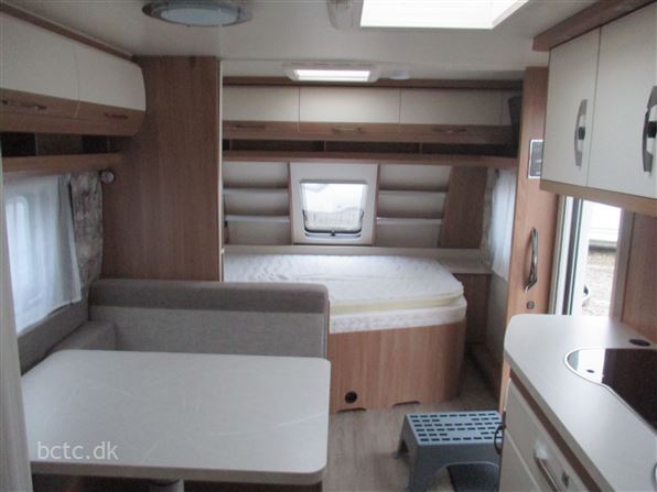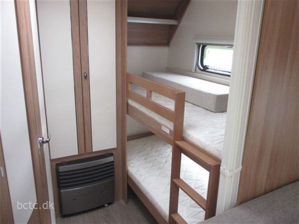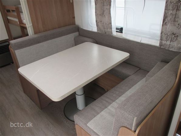 Lækker familievogn med køjesenge, siddegruppe og stor dobbeltseng samt stort køleskab.