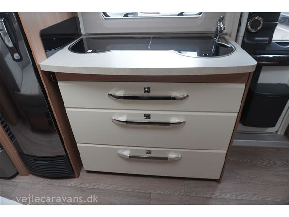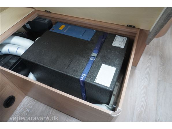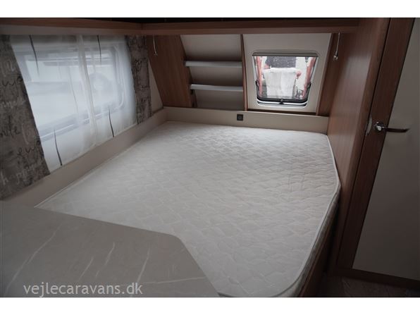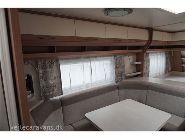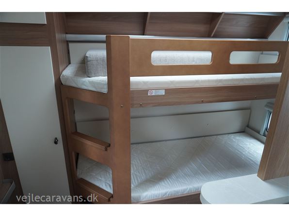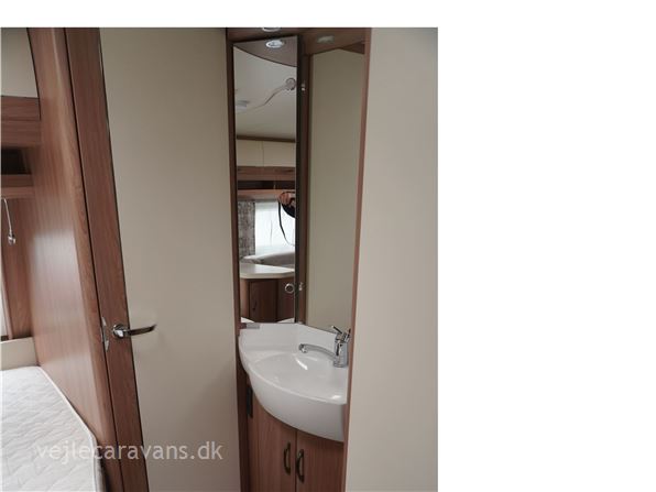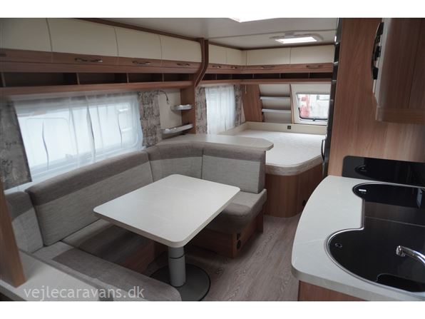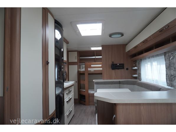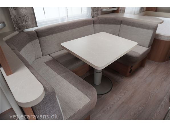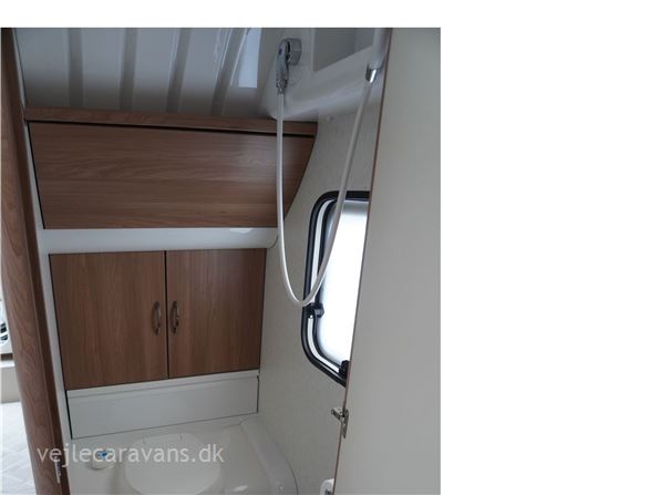 Familie campingvogn med fransk seng i venstre side foran. Toilet i højre side for med håndvask udenfor toilet. 2 Køjer på tværs af bagenden med 2 klædeskabe. Rundsiddegruppe midt i vognen med køkken overfor med 3 gasblus, brede skuffer, samt et køleskab på 152 ltr. Der er monteret mover, aircondition i den ene siddegruppe. Der medfølger et Ventura pacific 300 med fiber stænger, og et Isabella sun shine. Prisen er inkl. leveringsomkostninger og nr. plade. Der er 1 års garanti på vognen.