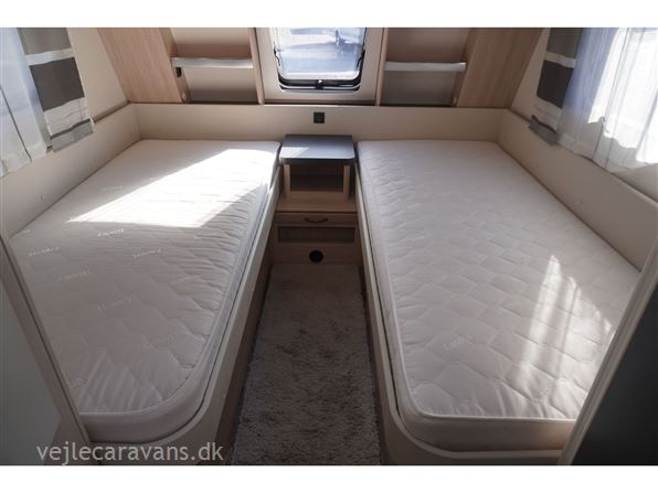 En flot Hobby med 2 enkeltsenge med mulighed for at lave en dobbeltseng i forenden af campingvognen. Rundsiddegruppe bagerste i vognen. Køkken med 3 gasblus, brede skuffer, og et køleskab på 152 ltr. Der er toilet i venstre side af vognen væk fra fortelt siden. Der er monteret mover, Thule 6300 markise på 3,5 meter, gulvvarme, kantsyet tæpper i vognen. Der medfølger ikke nogen fortelt så hør os om mulighederne. Prisen er inkl. leveringsomkostninger og nr. plade. Der er 1 års garanti på vognen.