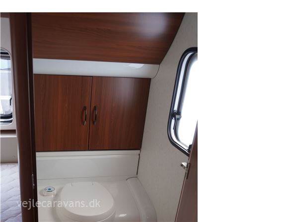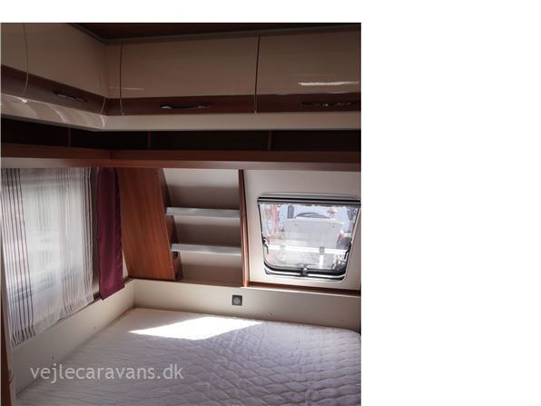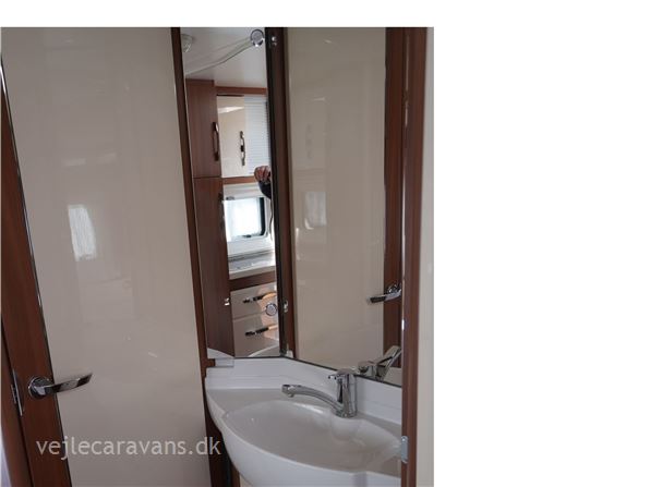 Campingvogn med fransk seng i venstre side for. Toilet højre side foran med håndvask udenfor toilettet. Stor rundsiddegruppe bagerste i vognen. Køkken i venstre side af vognen med 3 gasblus, brede skuffer, 2 udtræksskabe, samt et køleskab på 150 ltr. Der er monteret mover, aircondition, og cykelholder til 2 cykler. Der medfølger ikke nogen fortelt så hør os om mulighederne. Prisen er inkl. leveringomkostninger og nr. plade. Der er 1 års garanti på vognen.