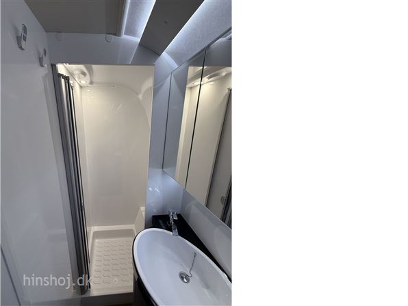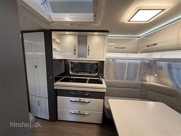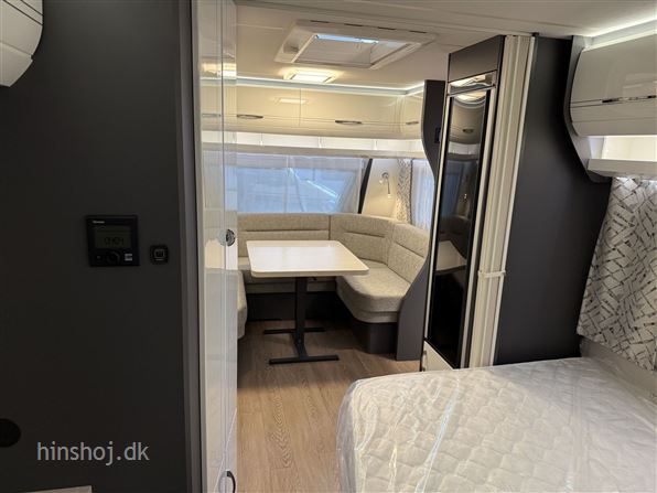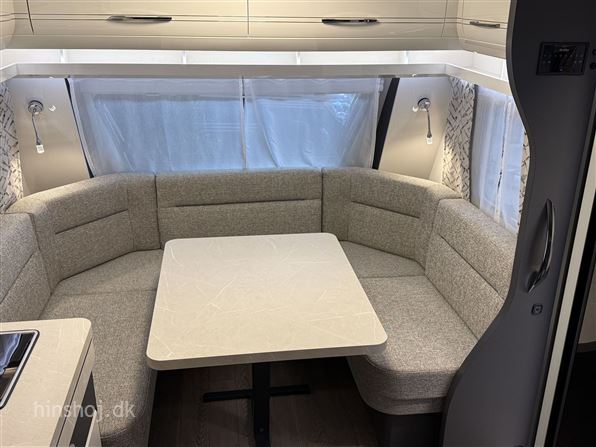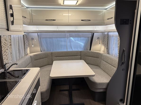 Flot dobbeltsengsvogn med rundsiddegruppe og stort toiletrum med brusekabine i bagenden, Combi varme med 10 liter varmtvand, Udover al standardudstyret er denne vogn med 1800 kg aksel mulighed for nedvejning uden merpris, , Gulvtemperering. Leverings omkostninger og nummerplade er inkl. i prisen. Hinshøj Caravan "Stedet hvor campister mødes".