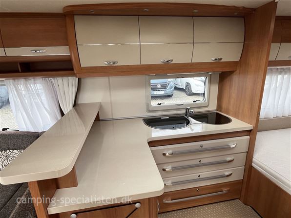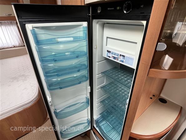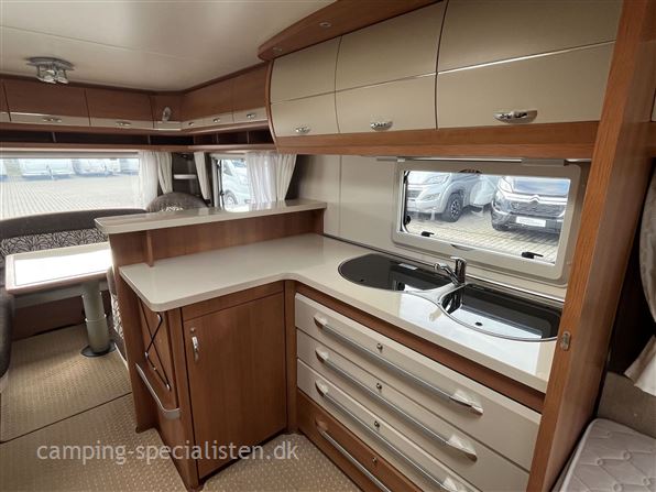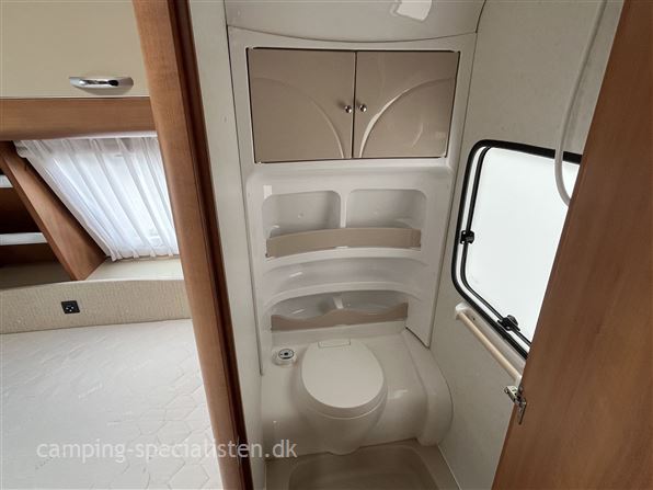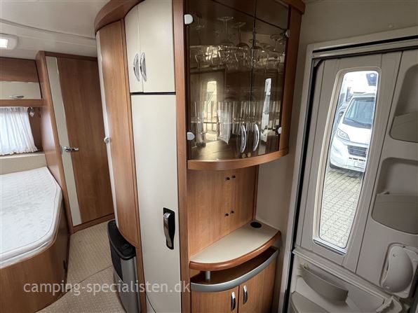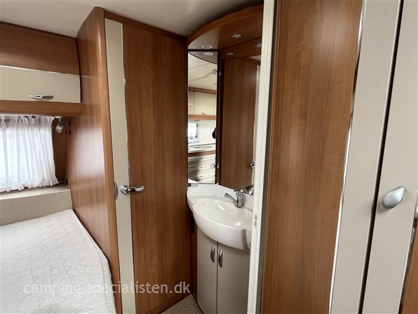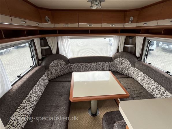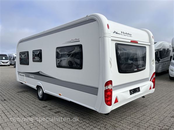 Stor og rummelig Hobby med den meget populære indretning med Fransk dobbeltseng i for sammen med toilet. I mnidt er der stor klædeskab, stort køleskab og stort "samtalekøkken" med vinkel. Og i bagenden er der en kæmpe rundsiddegruppe. Af udstyr kan nævnes varmt vand, blæsevarme, tæpper, serviceklap, stabilisator og et Isabella Commodore Dawn fortelt med stålstænger.