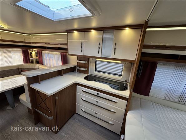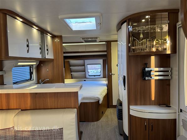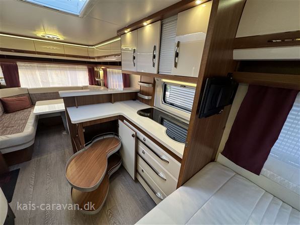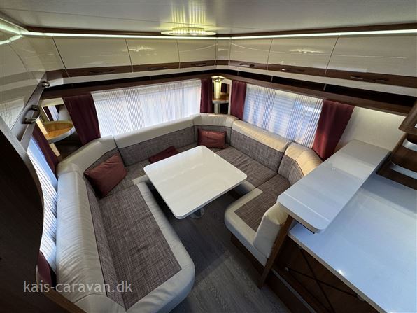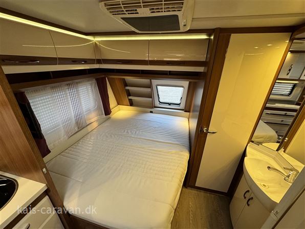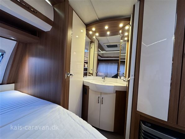 Super flot og velholdt vogn med stor fransk dobbeltseng og toiletrum forrest i vognen, midt i vognen stort vinkelkøkken med skuffer od stort køleskab med fryser. bagerst i vognen en stor rundsiddegruppe. Vognen er udstyret med Mover, 12 v pakke med Batteri, Aircondition, By vand, Alufælge, Gulvvarme, Cykelholder, Memoryfoam topmadras, Isabelle Commodore fortelt. Prisen er incl leverings omkostninger
