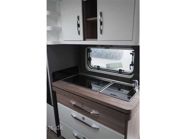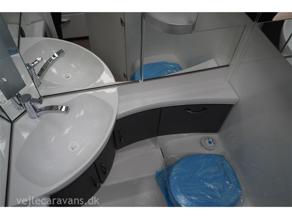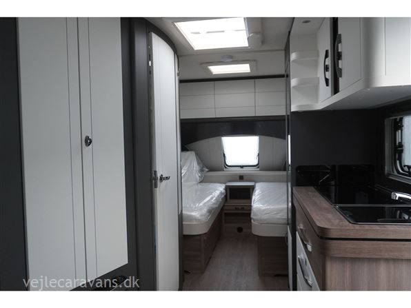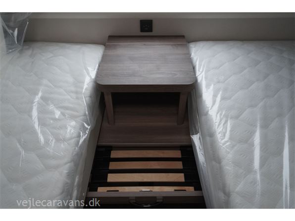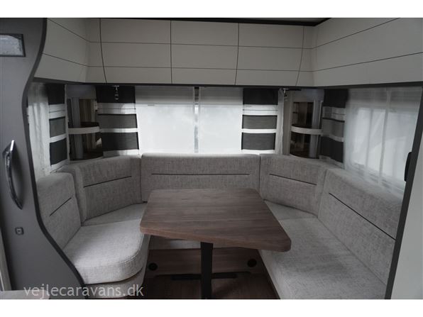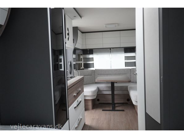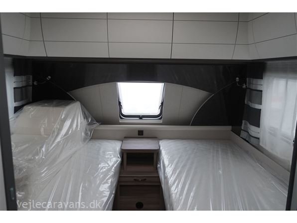 En flot campingvogn med 2 enekltsenge med mulighed for at lave en dobbeltseng i forenden af vognen. Rundsiddegruppe bagerste af campingvognen. Køkken med 3 gasblus og brede skuffer, samt et køleskab på 140 ltr. Toilet i venstre side af vognen væk fra fortelt siden. Vognen er bestilt med følgende ekstra udstyr: 1800 kg. aksel, Alufælge, gulvtemperering, sengeudvidelse, TV holder. Prisen er inkl. leveringsomkostninger og nr. plade.
