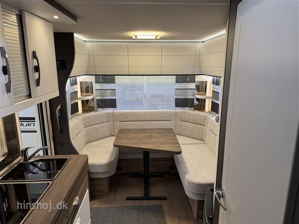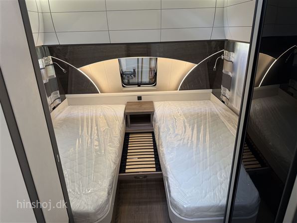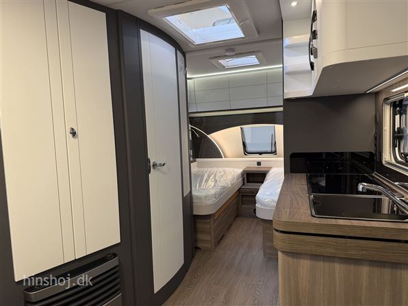 Hobby Excellent Edition 495 UL 2025: Super flot vogn i det flotte design samt flotte farver og Santo polster, enkelsenge og sengeudvidelse samt en dejlig rundsiddegruppe, der er stort køleskab, gulvtemperering, LED belysning, mulighed for nedvejning af totalvægten uden merpris, serviceklap, multistik i teltside m.m. Hinshøj Caravan "Stedet hvor campister mødes".