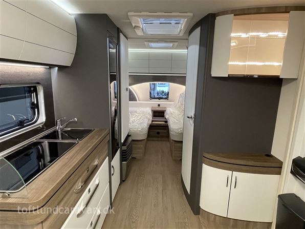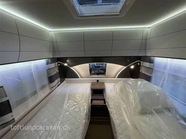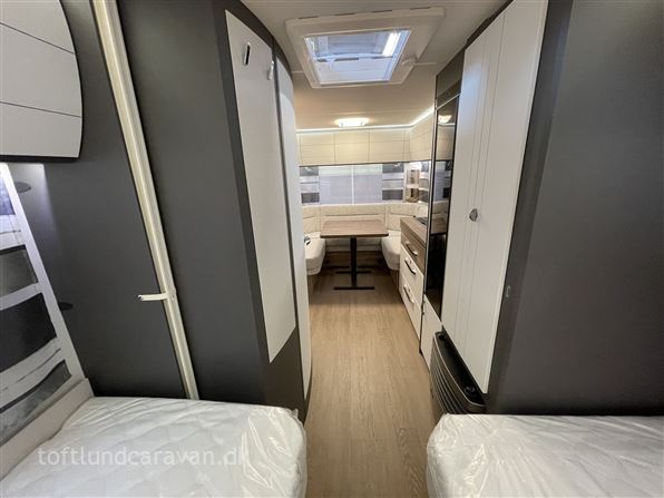 Vognen er bestilt med flg. ekstra fra fabrikken: Gulvtemperering kr. 6541,- Sengeudvidelse til enkeltsenge med ekstra hynde kr. 3828,- Stor aksel 1800 kg kr. 4409,- udstyr i alt kr. 14778,- I alt for denne vogn kr. 279.728,-