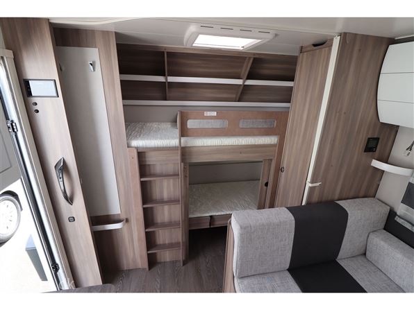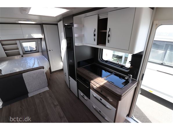 Super lækker familievogn, som er special-bygget med: Gasbageovn, garage under køjeseng, Truma Combi 6 E (gas og el), gulvvarme, 12V autarkie-pakke, gasudtag, TV-beslag samt 15" alufælge og forstærket undervogn til 2000 kg.