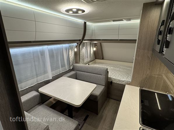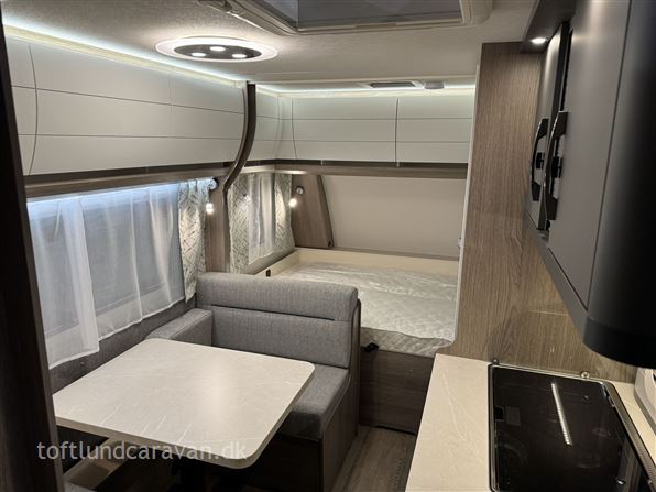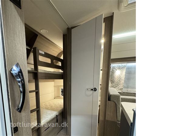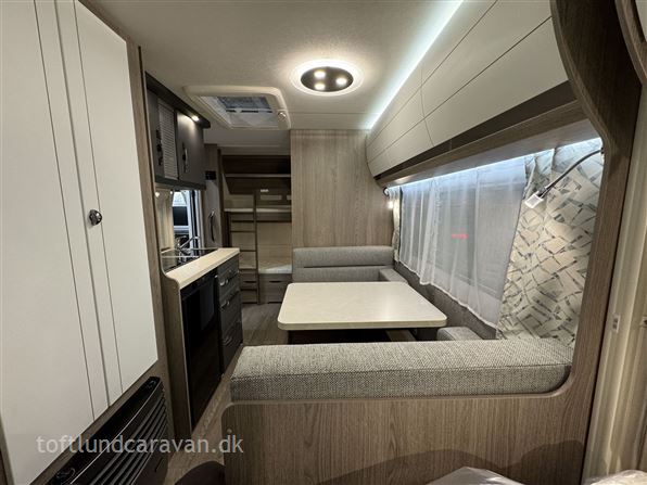 Denne vogn er bestilt hjem med flg. fabriksmonteret ekstraudstyr: Opvejning 1500 kg kr. 3999,- (Kan gratis nedvejes) Ambiente LED belysning kr. 2899,- Udstyr ialt kr. 6.898,- Samlet pris for denne vogn ialt kr. 219.848,- Fantastisk flot ny 2024 model med 12 års tæthedstryghed oglav vægt og yderst populær indretning til børnefamilien, som gerne vil have deres egen seng til hvert familiemedlem. Der er 2 gode køjer bagerst, siddegruppe i midten som nemt omdannes til dobbeltseng og stor dobbeltsneg i forenden, ialt op til 6 sovepladser her.