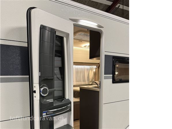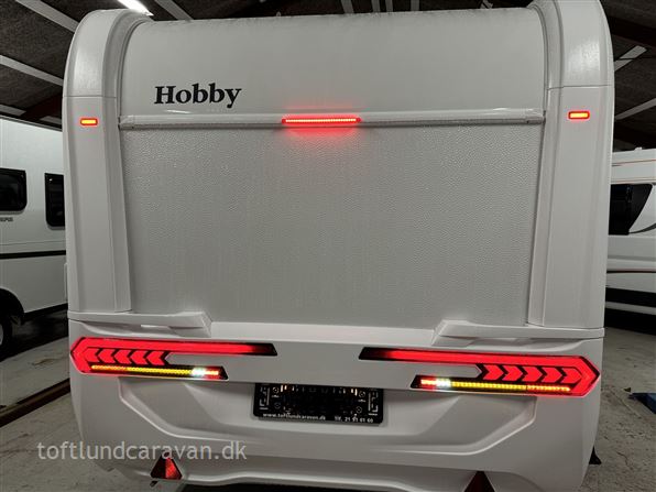 Ekstra bred indgangsdør, i en del, med tredobbelt lås, vindue, affaldsspand, opbevaringsrum og insektplisségardin i dørrammen | Træktøjsafdækning | KNOTT ANS-påløbsbremse med automatisk efterjustering | Tagluger med mørklægnings- og insektplisségardin | Kassette med mørklægnings- og myggenet gardin. | Køkkenvindue med rullegardin med integreret stikdåse | DOMETIC køleskab, 98 liter inkl. 9 liter frotboks, kompressorteknik | Komfortable madrasser med fjederkerne | HOBBY CONNECT, styring af teknikken med Hobby-betjeningspanel og Bluetooth App | Hyggebelysning | Mindst fem stikdåser ... og meget mere