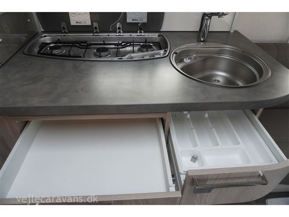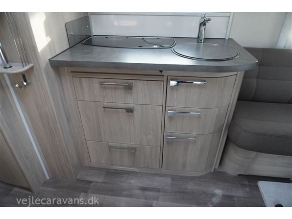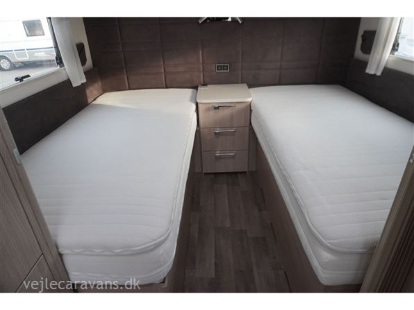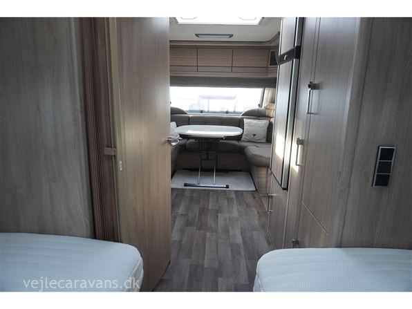 Vinter campingvogn med 2 enkeltsenge bagerste i vognen med elektrisk løftbar hovedgær. Rundsiddegruppe i forenden af campinvognen. Køkken i venstre side af vognen med 3 gasblus, skuffer, og et 177 ltr. køleskab med separat fryser. Toilet i venstre side af vognen væk fra fortelt siden. Et skab med hylder og et klædeskab til hænger tøj. Der er monteret mover, truma mono control, gasudtag i gaskasse, og gasalarm. Der medfølger et Isabella commodore dawn med carbonx stænger, og et Isabella winter fortelt, samt en Fiamma posemarkise. Prisen er inkl. leveringsomkostninger og nr. plade.