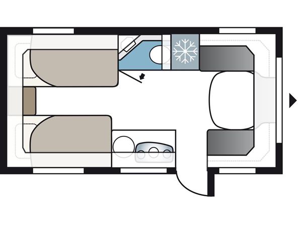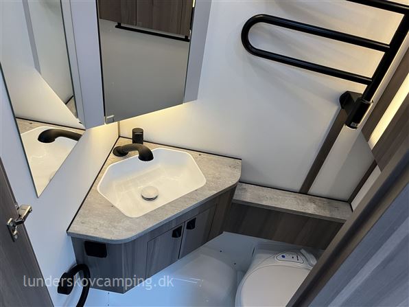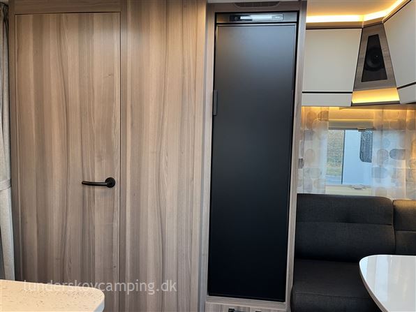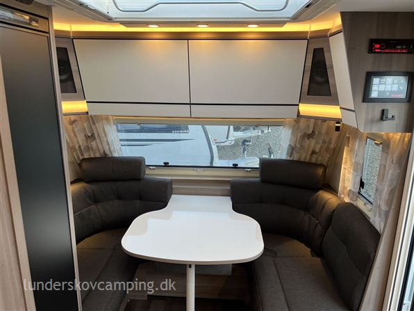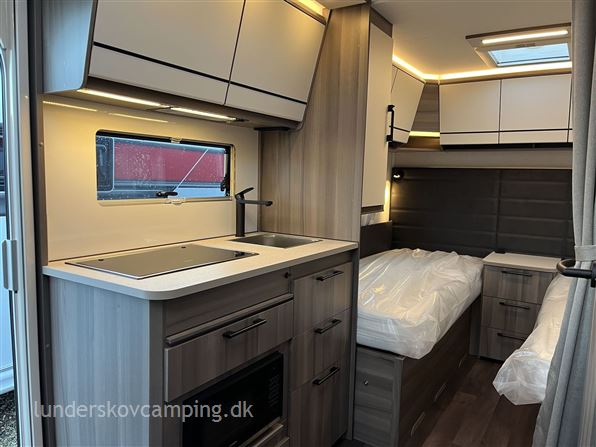 Kabe´s helt lille model med enkeltsenge. Denne vogn er monteret med: Microovn, Komfortpakke (nakkepuder-serviceklap-håndklædetørrer-hylder i overskabe) og Designpakke (Stor tagluge, alufælge, dør med vindue & træktøjsafdækning). Vognen har et elegant højt smalt køleskab, og badeværelset har et sidemonteret toilet. Hyndebetræk: Phoenix Panel (sort). Prisen er incl. dette udstyr, leveringsomkostninger og nummerplade. Kontrolleret vægt: 1.339 Kg.