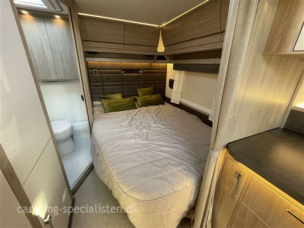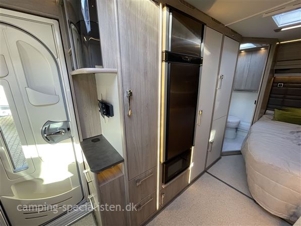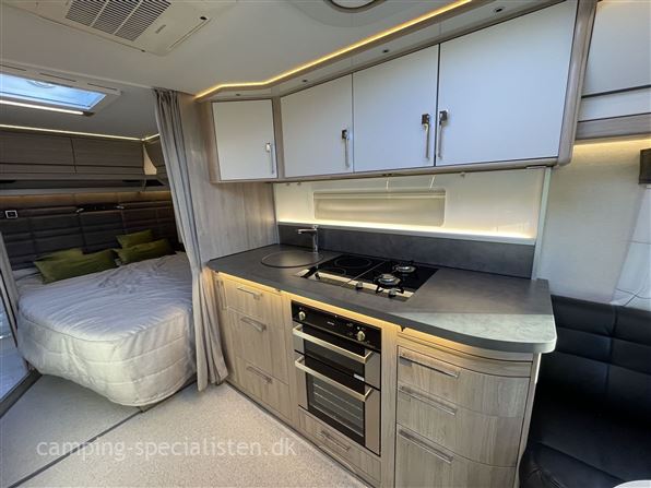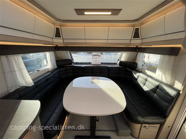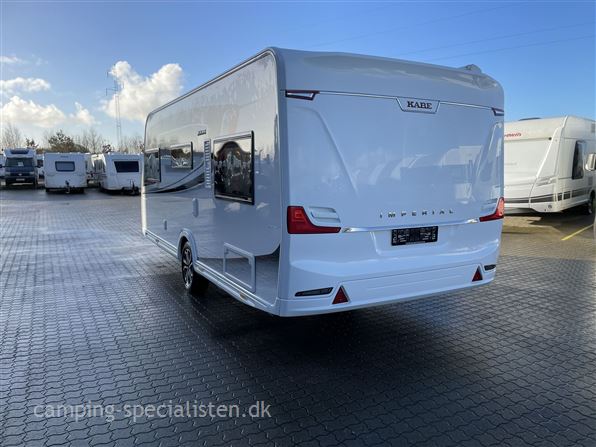 Meget eksklusiv Kabe Imperial 560 XL KS fra 2023 - Flot vogn der står næsten som ny - rundsiddegruppe i læder, fransk dobbeltseng, stort køkken og masser af skabsplads. Eksklusiv udvendigt design med glatte sideplader.