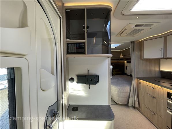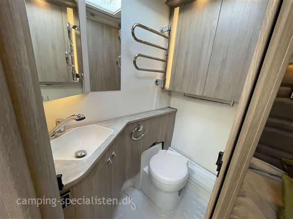Masser af udstyr!: Alde 3030 varme, vandbåren gulvvarme, Seitz rammevinduer, ATC, Truma DuoControl samt udvendigt gasudtag i gaskasse, alufælge, Enduro cykelholder, mover, klimaanlæg, Smart-D styrepanel, emhætte, stort køleskab, gasbageovn, microbølgeovn, elektrisk tømning af vandtank, router, TV-antenne, udvendig strømudtag, kantsyet tæppe, håndklædetørrer, Isabella Commodore Dawn med CarbonX letvægtsstænger mm.