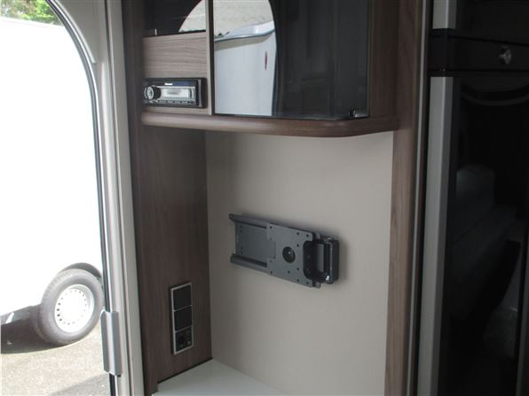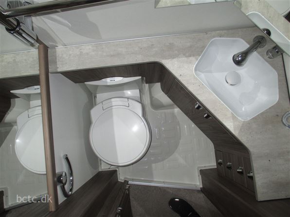 Denne vogn er monteret med: Tagmonteret Thule 6300 markise 450 cm lang og elektrisk udlæg, samt Truma XT fuldelektrisk mover (absolut topmodel).
