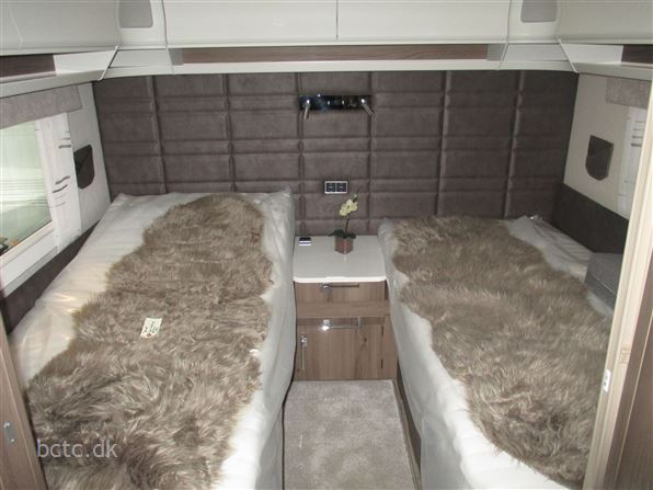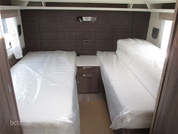 PREMIUM LINE Kampagen-model med store enkeltsenge og lameludtræk mellem sengene. En ægte vintervogn med ALDE 3030 centralvarme, vandbåren gulvvarme, lædersæder, gasbageovn, stort køleskab med KOMPRESSOR, elektrisk indstilleligt hovedgærder, design-pakke, Wifi m/ router, elektrisk indgangstrin, håndklædetørrer og meget mere.