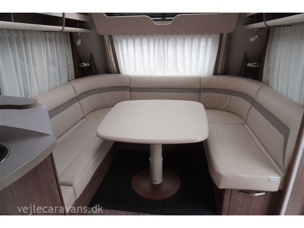 Meget velholdt vinter campingvogn med Alde centralvarme og vandbåren gulvvarme. Der er fransk seng i venstre side bag. Toilet i højre side bag med håndvask inde i toiletrummet med bruser ved håndvasken. Stor rundsiddegruppe i for under panoramavinduet. Køkken i venstre side af vognen med masse af bordplads, og 3 gasblus, skuffer og skabe, emhætte, et 190 ltr. køleskab med separat fryser, samt en mikroovn. Der er indstiksskab lige inden for døren. Der er monteret mover, aircondition, Inet boks på vognen. Der medfølger et Isabella commodore dawn og et Isabella sun shine plus solsejl. Prisen er inkl. leveringsomkostninger og nr. plade.