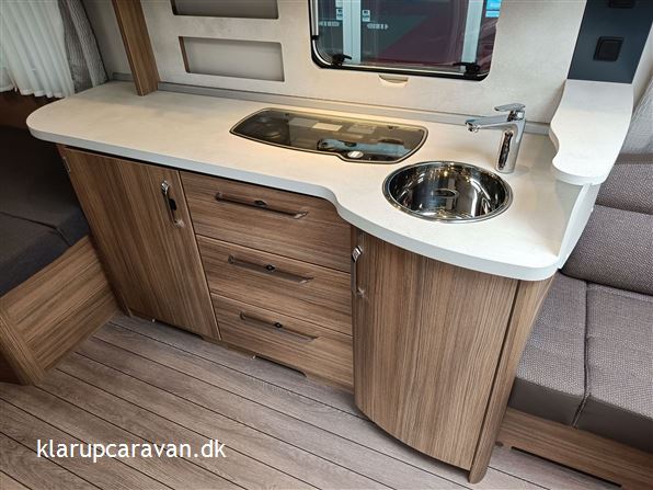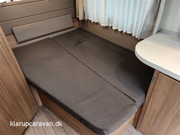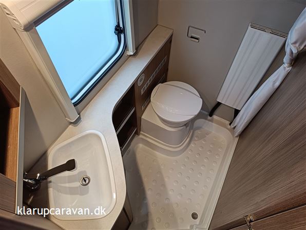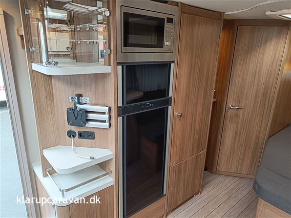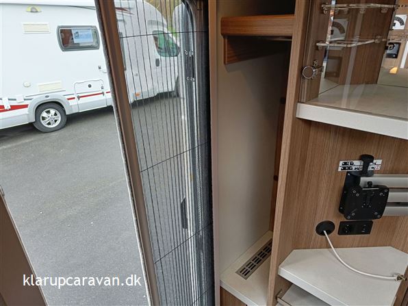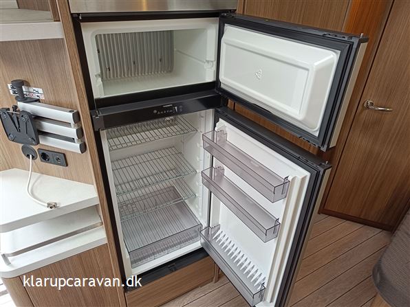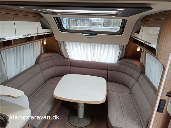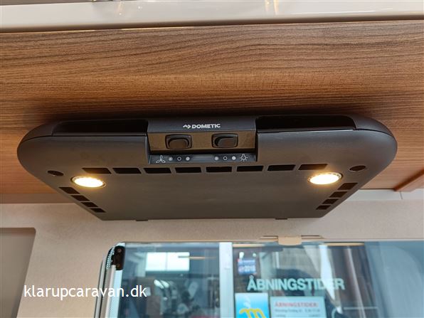 Super lækker vintervogn med centralvarme og vandbåren gulvvarme. Indrettet med stor lækker rundsiddegruppe i front under den store panoramarude og fransk seng i bag. Stort køkken i midt, udstyret med stort køleskab med seperat fryser, emhætte samt en mikroovn. Vognen er udstyret med gas og røgalarm, fuldautomatisk mover og der medfølger et 3 mtr Ventura fortelt.