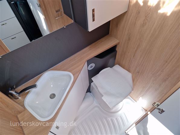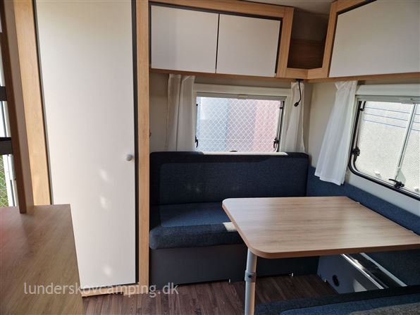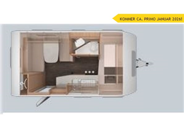 KOMMER CA. PRIMO JANUAR 2026!! Dejlig lille og let vogn. Flot stilrent design. Ekstraudstyr inkluderet i prisen: Hyggelig Ambientebelysning. Standardudstyr bl.a. tagluge (hæve/kip) 96 x 65 cm med myggenet og mørklægning, klar (bag), myggenetsdør, kraftige støtteben, næsehjul med vægtangivelse, selvjusterende bremser, KTA-chassis.