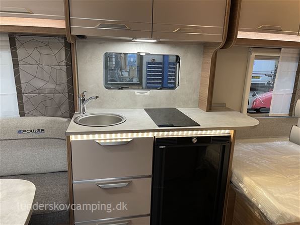 DEMOVOGN! Stærkt nedsat SPAR Kr.19.700,- Let vogn med populær indretning. E-Power Selection modellerne kører udelukkende på el, så sæt strøm til vognen og så er du kørende med varme/klima, komfur osv.
