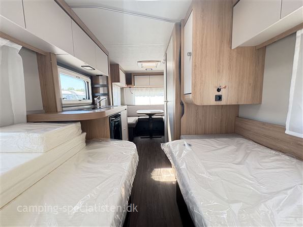 Knaus Sport 500 EU er det ideelle valg for campister, der søger komfort og fleksibilitet. Med enkeltsenge og en rummelig indretning er den perfekt til par, der ønsker god plads og praktiske løsninger.