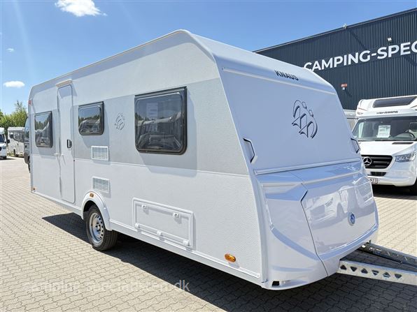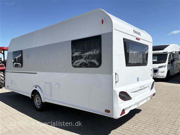 Vognen er udstyret med AKS tilkobling for øget stabilitet og hjulstøddæmpere, der sikrer en jævn kørsel. De solide 14" stålfælge, Knaus "Trend" dør, udelt uden vindue, og den praktiske serviceklap understøtter både stil og funktionalitet. Taglugen i vognen (40x40 cm) og toiletrummet giver en god ventilation, mens GFK taget og Alu-Hammerslag sideplader beskytter mod vind og vejr. LED forteltlampe og 3. bremselys forbedrer sikkerhed og synlighed.