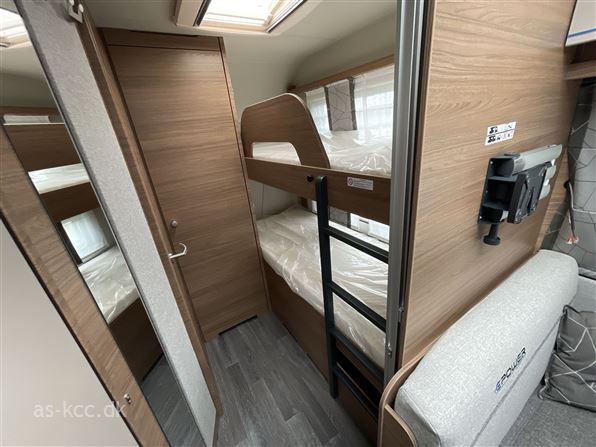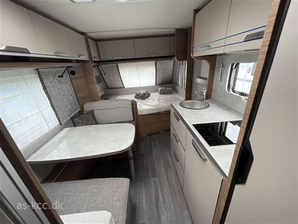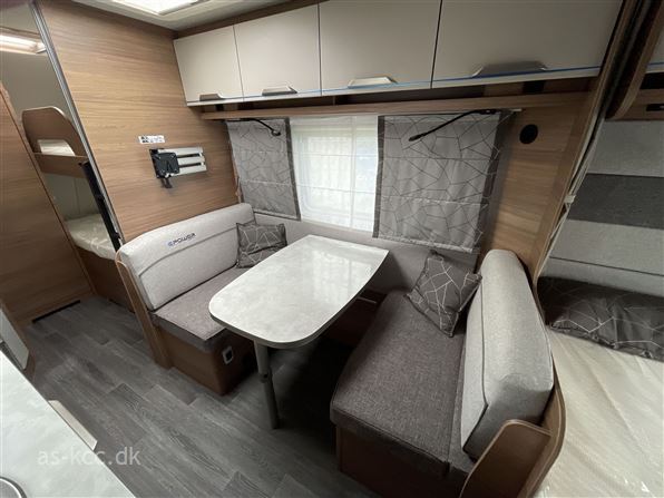 ✅ 4 sove- og 4 siddepladser (2 køjer og 1 dobbeltseng) ✅ Gardiner/skillevæg som kan danne soveværelser ✅ DOMETIC Freshwell 3000 Klimaanlæg ✅ Vertikal induktionskogeplade med 2 kogeøer ✅ Højt kompressorkøleskab med stor fryseboks ✅ Fuld integreret badeværelse med egen bruseniche ✅ Ekstra opbevaring i fronten af vognen ✅ Fladskærmsholder, og spotlights med USB-porte ved siddegruppen