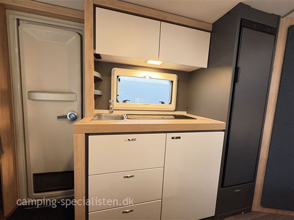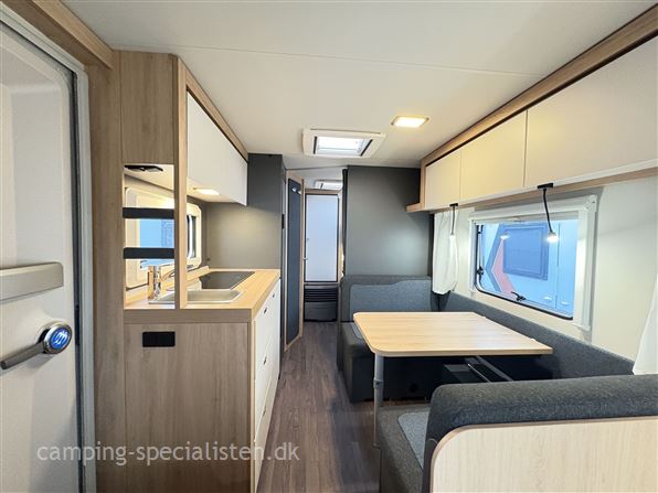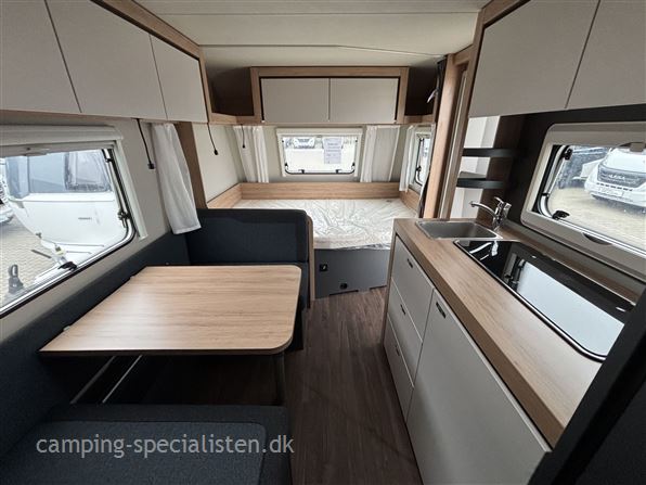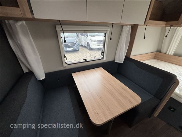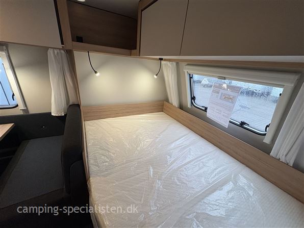 Knaus Sport 500 KD campingvogn er ideel til familier, der ønsker både komfort og funktionalitet på rejsen. Med plads til fem personer. Dobbeltseng på tværs i forenden, god siddegruppe i midten, køkken med store skuffer og slimline køleskab, I bagenden finder man 2 køjesenge og toiletrum med separat bruseniche.
