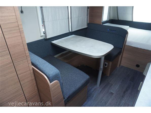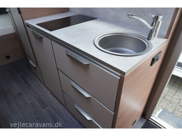 En campingvogn som kun kører på rent el. Vognen har en dobbeltseng på tværs i front af campingvognen. " køjer på tværs af campingvognen bagerste i vognen. Siddegruppe midt i vognen hvor der er monteret et klimaanlæg som kan køle og varme. Køkken med 2 inductions kogeplader, kompressor køleskab på 132 ltr. og skuffer. Der medfølger ikke nogen fortelt så hør os om mulighederne. Prisen er inkl. leveringsomkostninger og nr. plade.