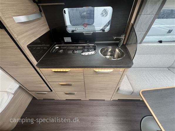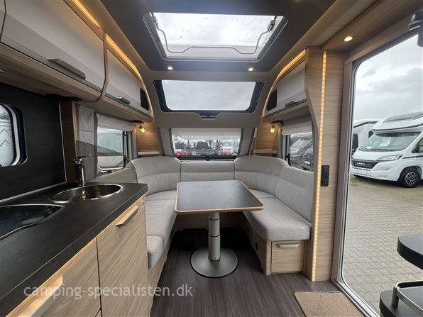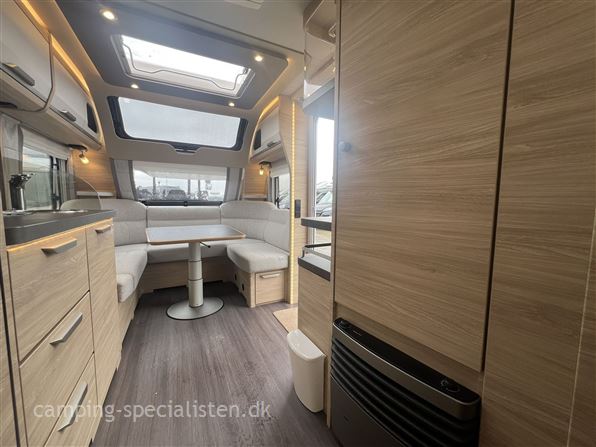 Pæn vogn holdt i hvide glatte sider og GFK tag. Vognen har fransk seng i bagenden, og stor fin rundsiddegruppe i for under sky-view fronten. Af udstyr kan nævnes, mover, alu-fælge, serviceklap, stabilisator, fast vandtank, blæsevarme, ultraheat, el-gulvtemperering, stort køleskab, masser af lys, varmt vand, blæsevarme og et stort Isabella Cirius 400 luftfortelt.