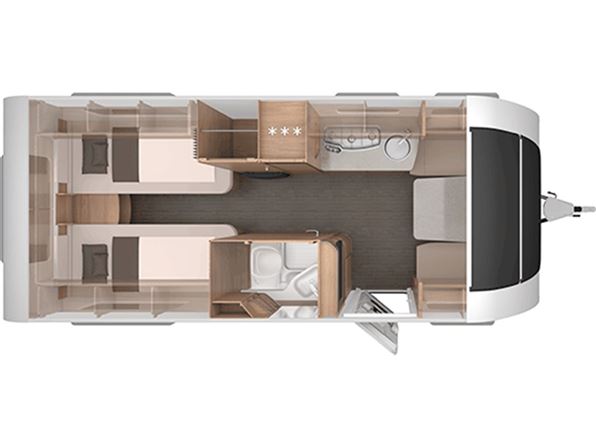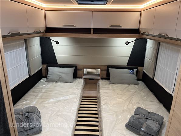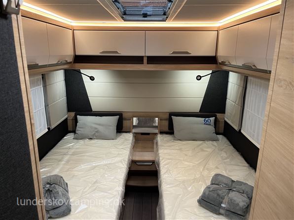 Flot vogn med enkeltsenge. Stor indgangsdør, bluetooth anlæg, lameludtræk mellem sengene m.m. Ekstraudstyr Inkluderet i denne pris: Stor Panorama tagluge 130X45 cm. Ekstra serviceklap i bag, Hyndebetræk: Active Rock.