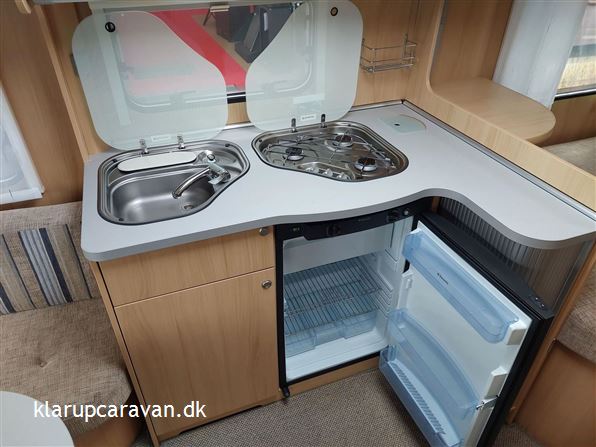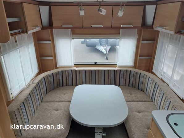 Pæn og velholdt LMC med rundsiddegruppe i bagenden og fransk seng i fronten. Fint køkken med skuffer og en stor bordplade med god frasætningsplads. Der medfølger et kantsyet tæppe, posemarkise samt et Isabella Ventura fortelt.