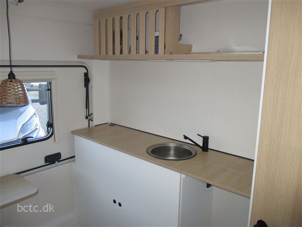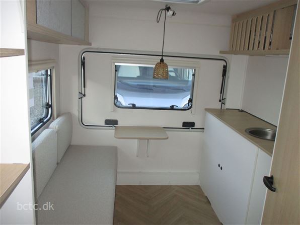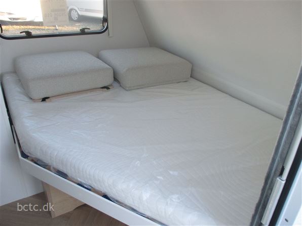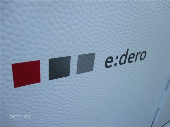 Super lækker nyhed fra LMC. Den rejsevenlige E:dero, som her ses i den store 400 C model. Vognen er med fast dobbeltseng og siddegruppe samt praktisk køkken og toiletrum. Stor panorama-låge i bagenden, så solnedgangen kan nydes ved vandet, naturen eller på campingpladsen. En lys og flot nyhed, som skal ses og opleves. Denne E:dero har vi bestilt med Stor E:dero 400C-pakke med kompressor-køleboks og praktiske hynder, som også kan bruges udendørs. Derudover solsejl og opbevaringsmoduler/bokse m.m. Derudover kan denne vogn opvejes til 1100 kg totalvægt. Kom og oplev denne flotte og meget lette nyhed fra kvalitets-bevidste tyske LMC - en del af Hymer.