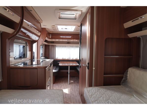 En flot campingvogn med 2 enkeltsenge med mulighed for at lave en dobbeltseng i forenden af campingvognen. Endesiddegruppe bagerste i vognen. Køkken midt i vognen med 3 gasblus og skuffer, samt et køleskab på 108 ltr. Toilet i venstre side af vognen væk fortelt siden. Der er monteret mover, cykelholder, ultraheat, duocontrol og gasalarm. Der medfølger et Isabella sun shine plus med front og carbonx stænger. Prisen er inkl. leveringsomkostninger og nr. plade.