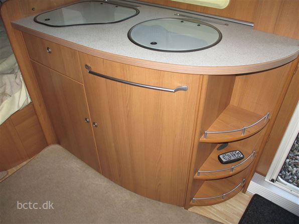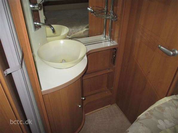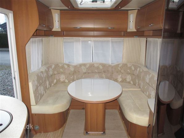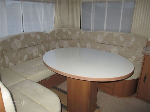 Vognen står med stort køleskab, faconsyet tæppe, fuldelektrisk mover, batterianlæg samt 3 m dyb fortelt.