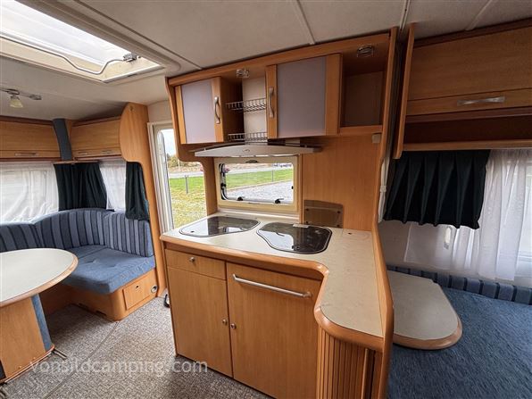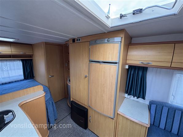 Flot og velholdt vogn med masser af udstyr, der er monteret mover, gulvvarme, Truma Ultra Heat el opvarmning, ekstra serviceluge, kombi udtag, Enduro cykelholder, alufælge m.m. Vognen er indrettet med rundsiddegruppe i front, meget åbent dobbeltseng i bag, køkken i midten med stort køleskab der vender væk fra forteltet. En flot vogn der skal ses. Prisen er inkl. nummerplade og leveringsomkostninger.