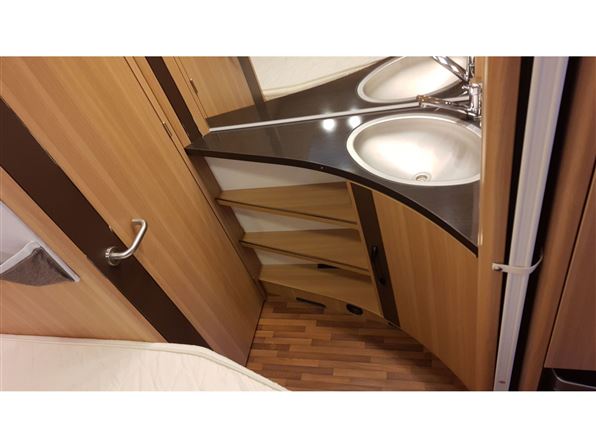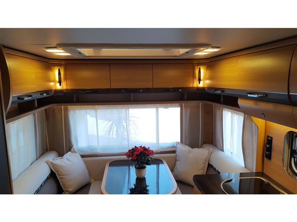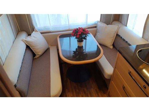 Lækker lys og pæn vogn med siddegruppe i bagenden og fransk seng i front. Vognen er meget velholdt både ude og inde. Vognen er med glasfibertag mod hagl, og der er monteret ATC (sikkerhed mod udskridning) Vognen er inklusiv markise. Prisen er inkl. leveringomkostninger og nummerplade. Vi kan hjælpe med finansiering - DET ER OS MED DE GODE TILBUD