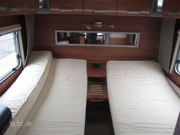 Flot og velholdt vogn med enkeltsenge m/ ergonomiske madrasser (hylex) og lameludtræk til én stor dobbeltseng.